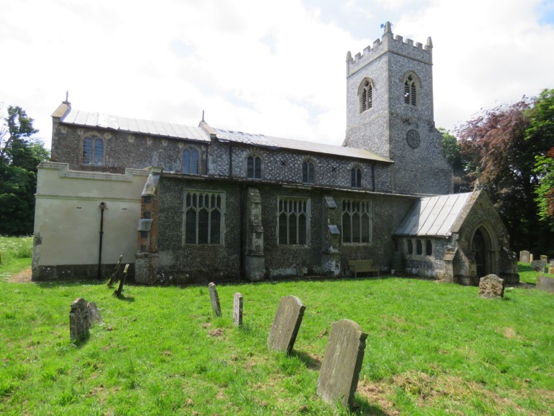 St Mary, Baconsthorpe The earliest parts of the church date from the 13th century and stand on Saxon foundations. The church is large building of flint and freestone. The square tower collapsed in 1739 and was not fully restored until 1788. Ref: Mee, A. 1947. The King's England - Norfolk.