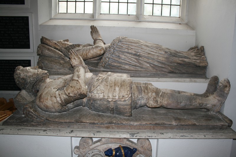 Little Walsingham, St Mary Most of the monuments were damaged during the 1961 fire, including the fine one to Sir Henry Sidney who died in 1612, and his wife Jane, plus the domed Jacobean font cover given by Dame Jane Sidney. The alabaster effigies of Sir Henry Sidney and his wife Jane, plus the accompanying inscriptions were repairable, and are to be found by the west end of the north aisle, with 3 coloured shields. Jermy arms above figures in lozenge. Refs: Farrer, E. 1887. Church Heraldry of