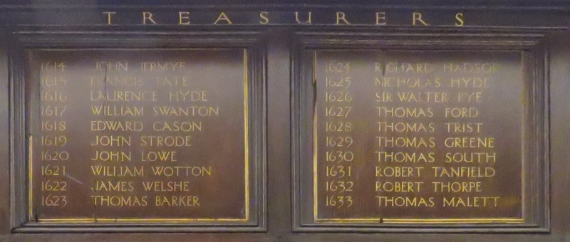 List of Treasurers of the Middle Temple, including John Jermye in 1614.