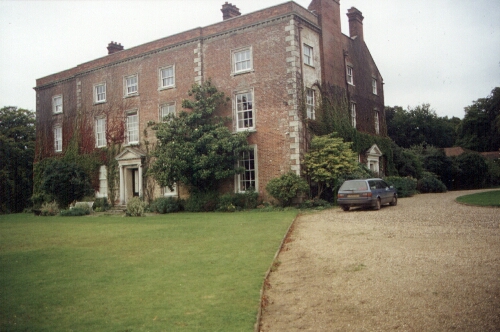 The southeast front is 5 bay, with quoins at the angles and at either side of the 3 bay centre, but with no other differentiation. The southern front is 8 bays probably built in two stages. The whole is 2½ storeys with a parapet. The house stands well in an attractive park above a longish lake. Ref: Kenworthy-Browne, et al. 1981. Burkes' and Savills guide to Country Houses: Volume 3 - East Anglia.