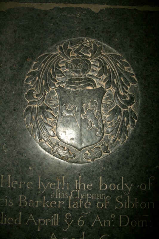 Arms: Chapman alias Barker, impaling Arg. a lion rampant guardant. Gu. JermyCrest: Chapman