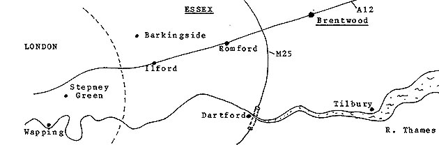 How the Spurgeon family in general were related to Shirley’s family (surname Kippin) was also unknown to us. She believed the connection my have been through her paternal grandmother - Christianna - whose maiden name had been Nash. The Nashes were understood to derive from south-east Essex, near Brentwood, and therefore this district seemed a likely focus of any enquiries we might make about the lost estate. This was some miles to the east of Barkingside where the Kippins had lived after moving from their original centres at Wapping and Stepney Green. That is: